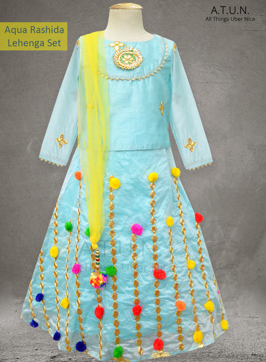 Published March 16, 2020. Size: 1031 × 1400 in Aqua Rashida Lehenga Set (Front)