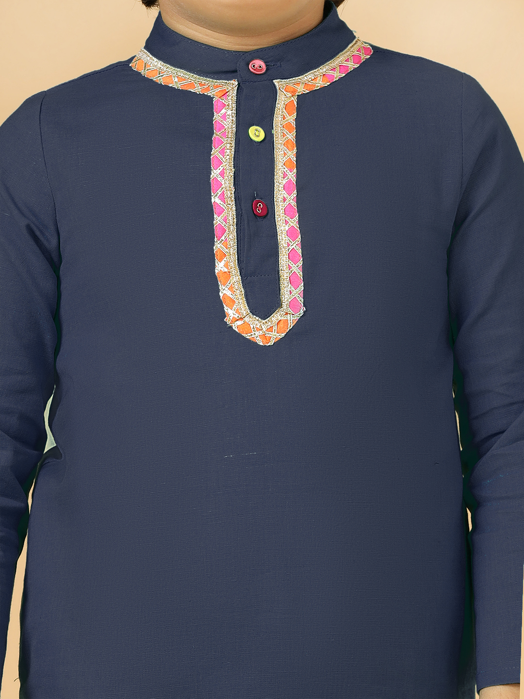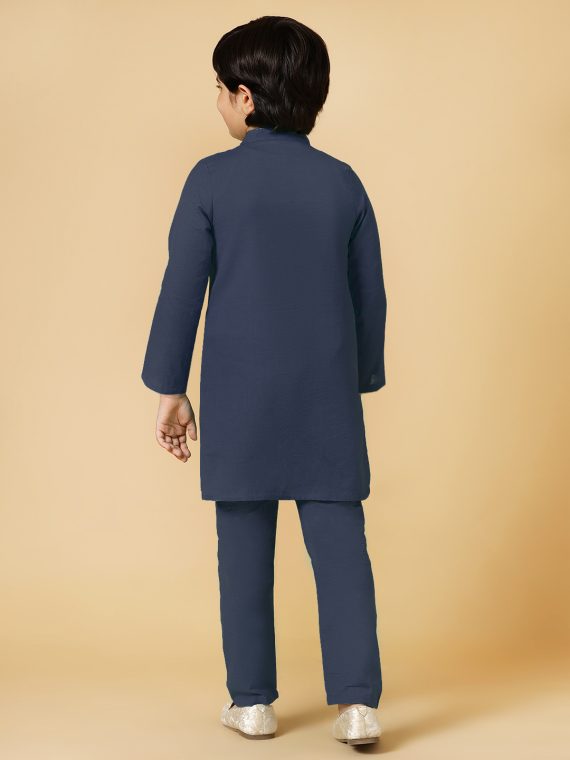 A.T.U.N. Boy’s Navy Linen Kurta Pyjama Set