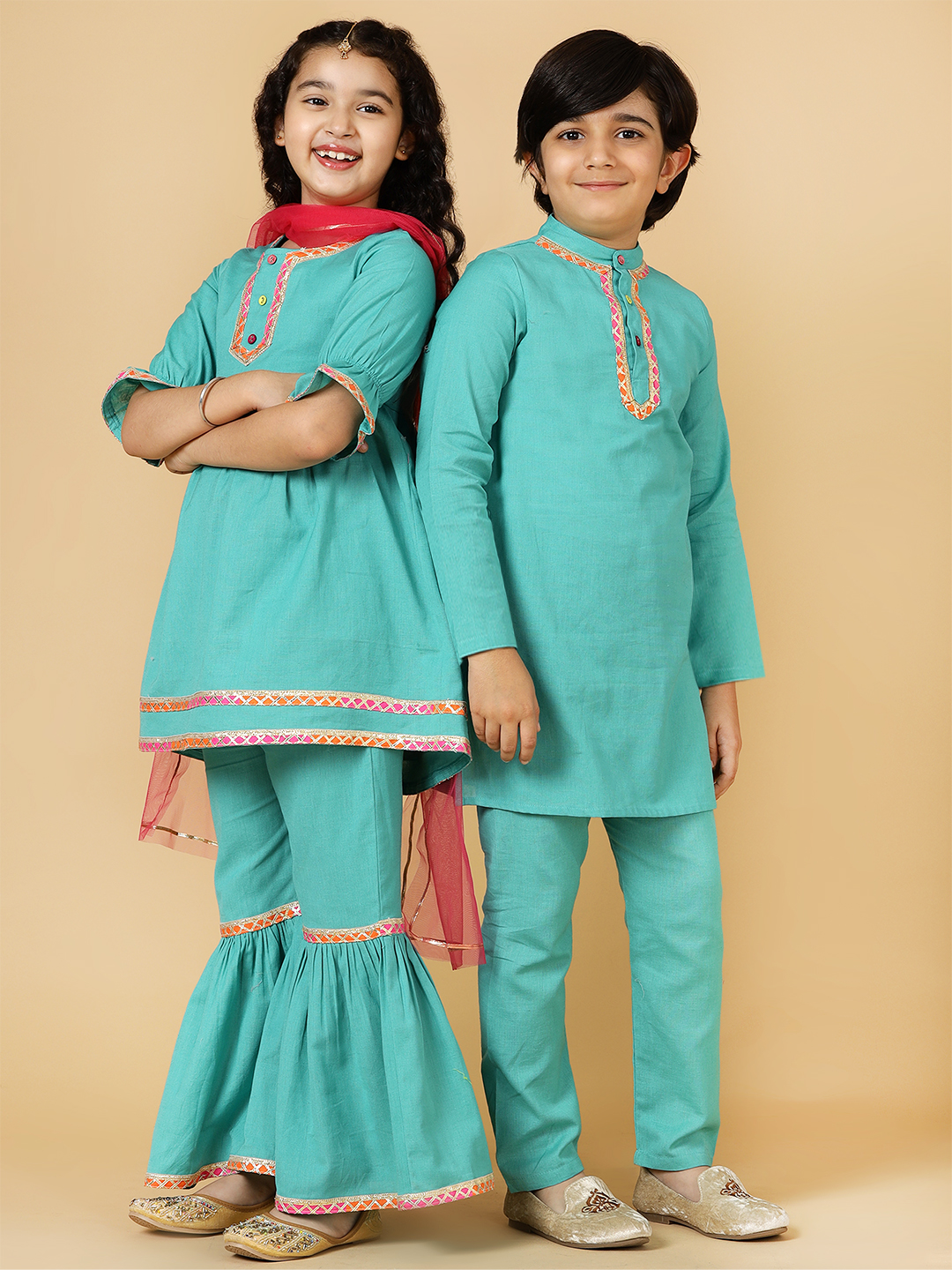 A.T.U.N. Girl’s Teal Linen Sharara Set