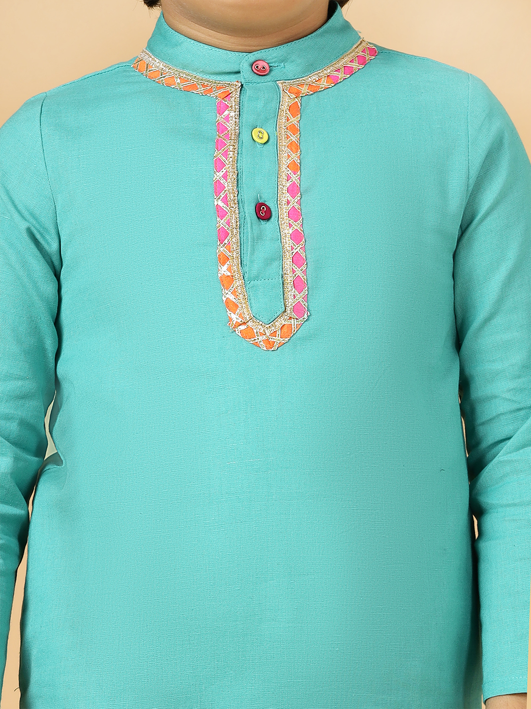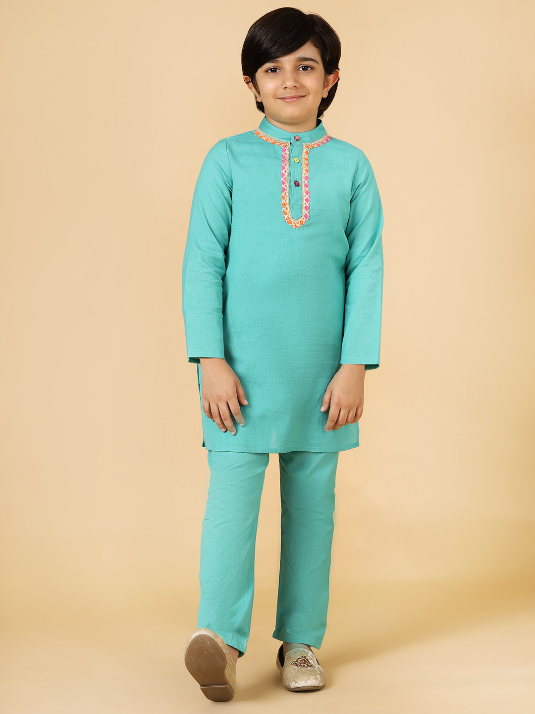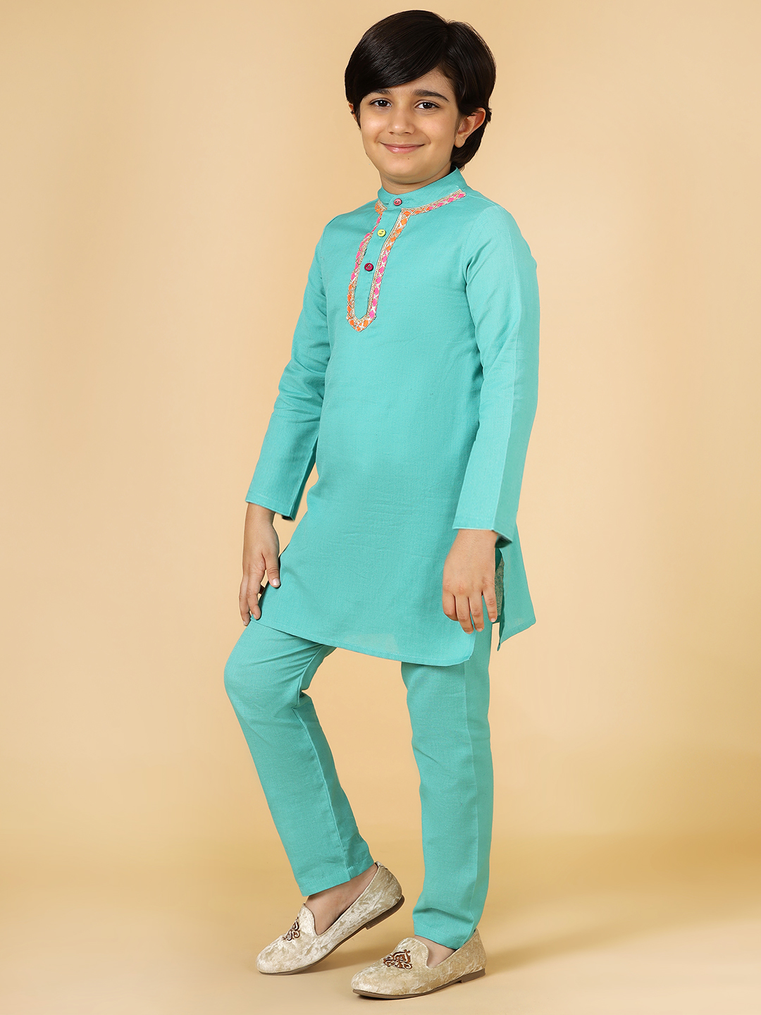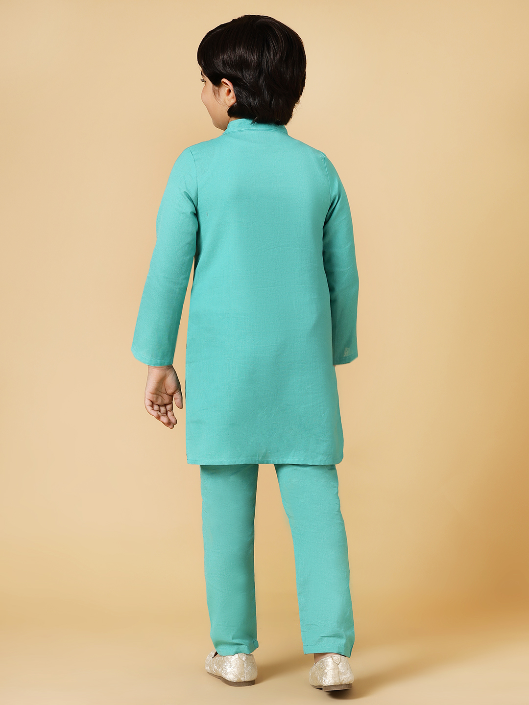 A.T.U.N. Boy’s Teal Linen Kurta Pyjama Set