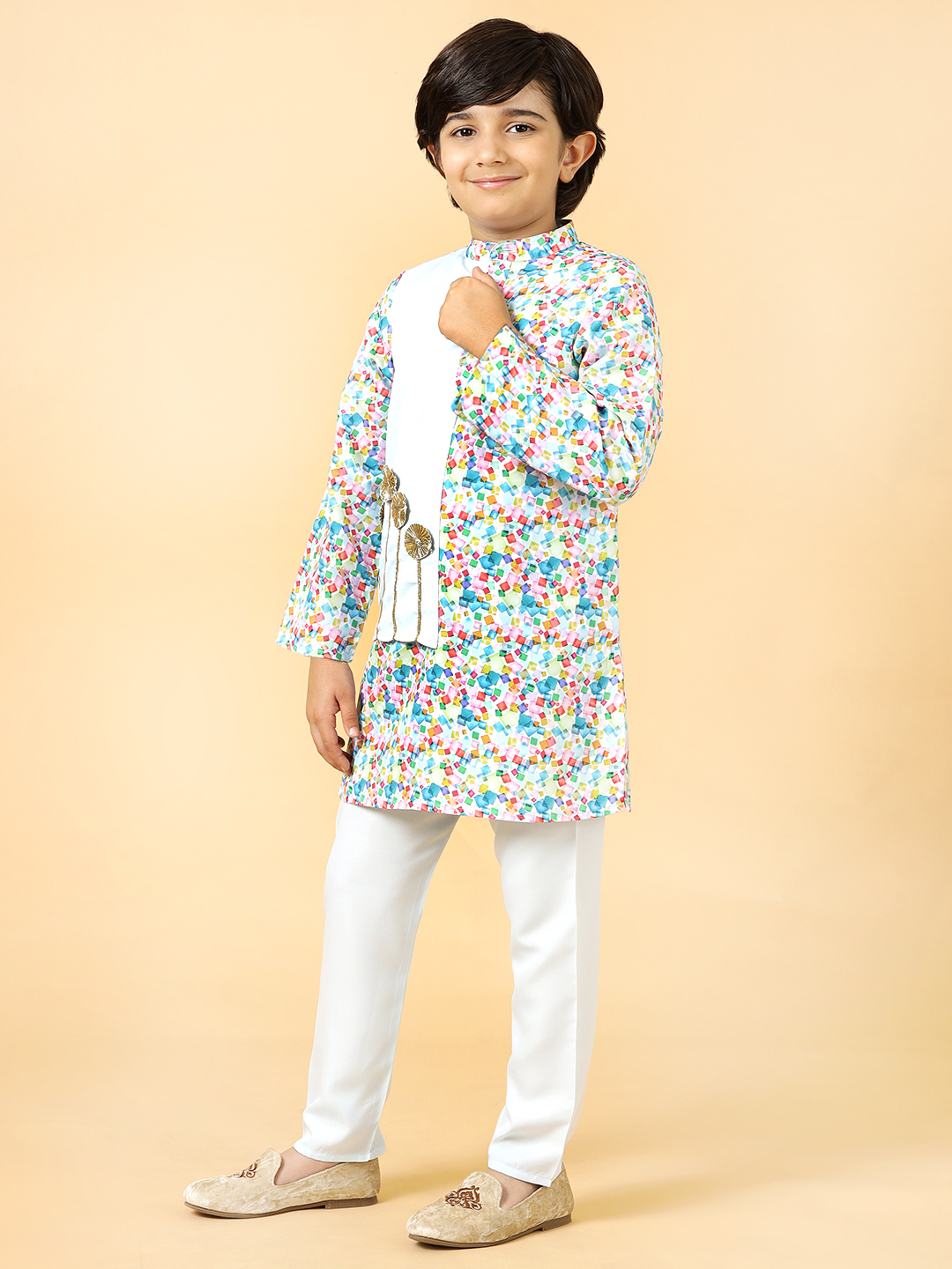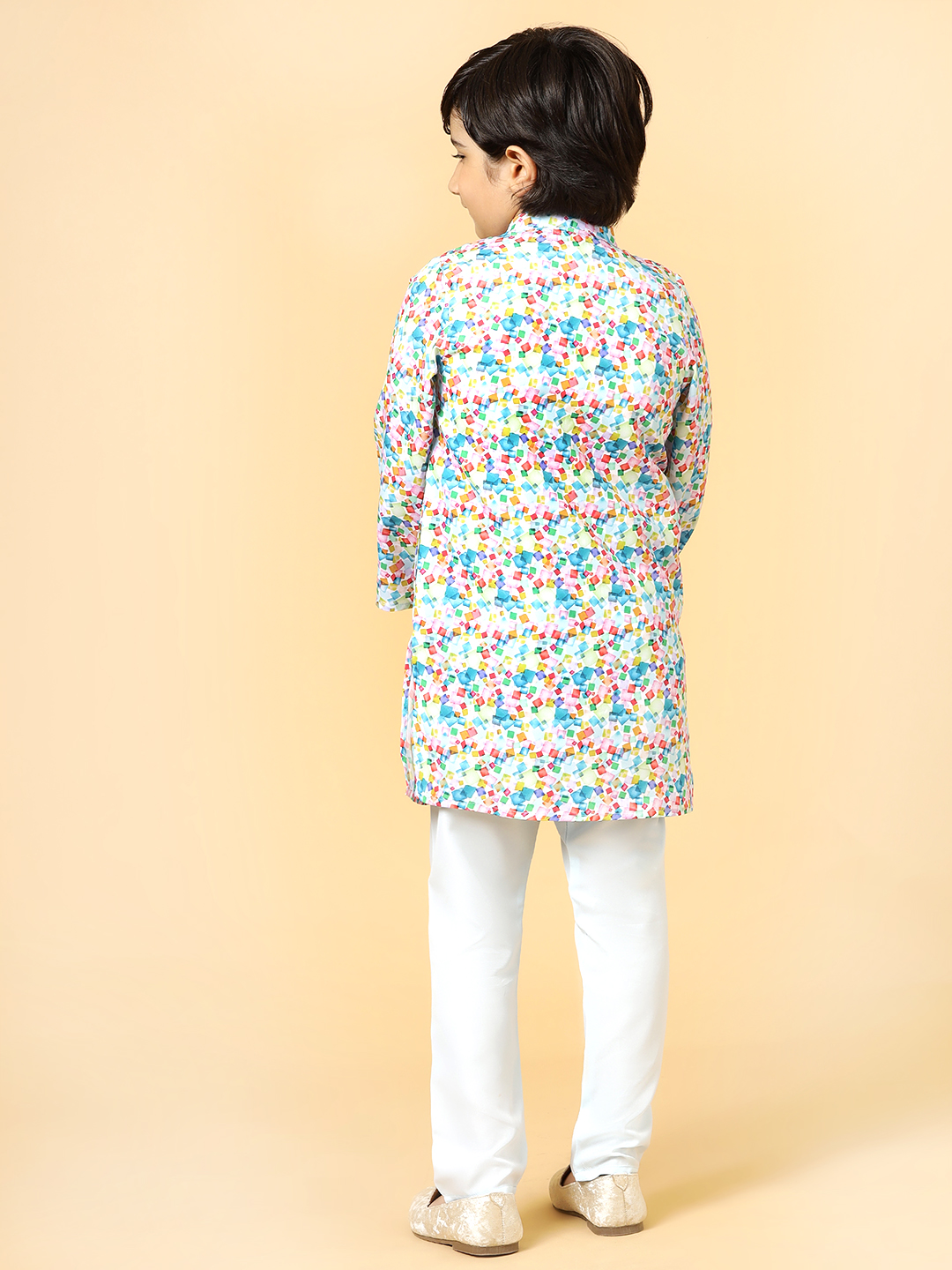 A.T.U.N. Boys’s Blue Floral Patch Kurta Pyjama Set