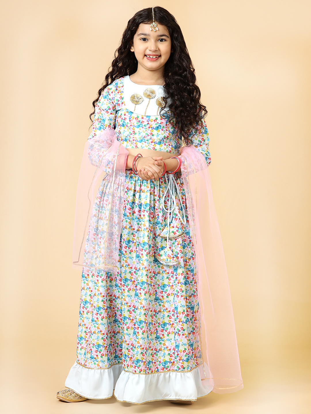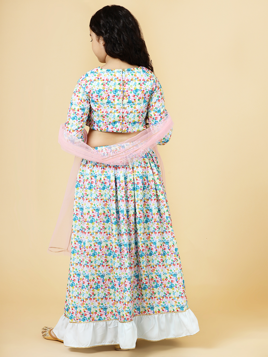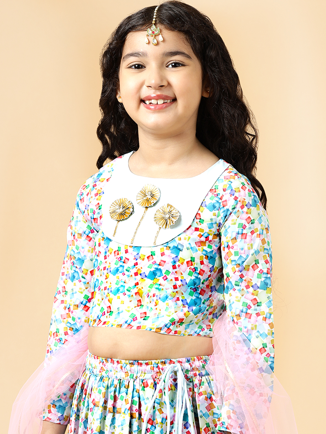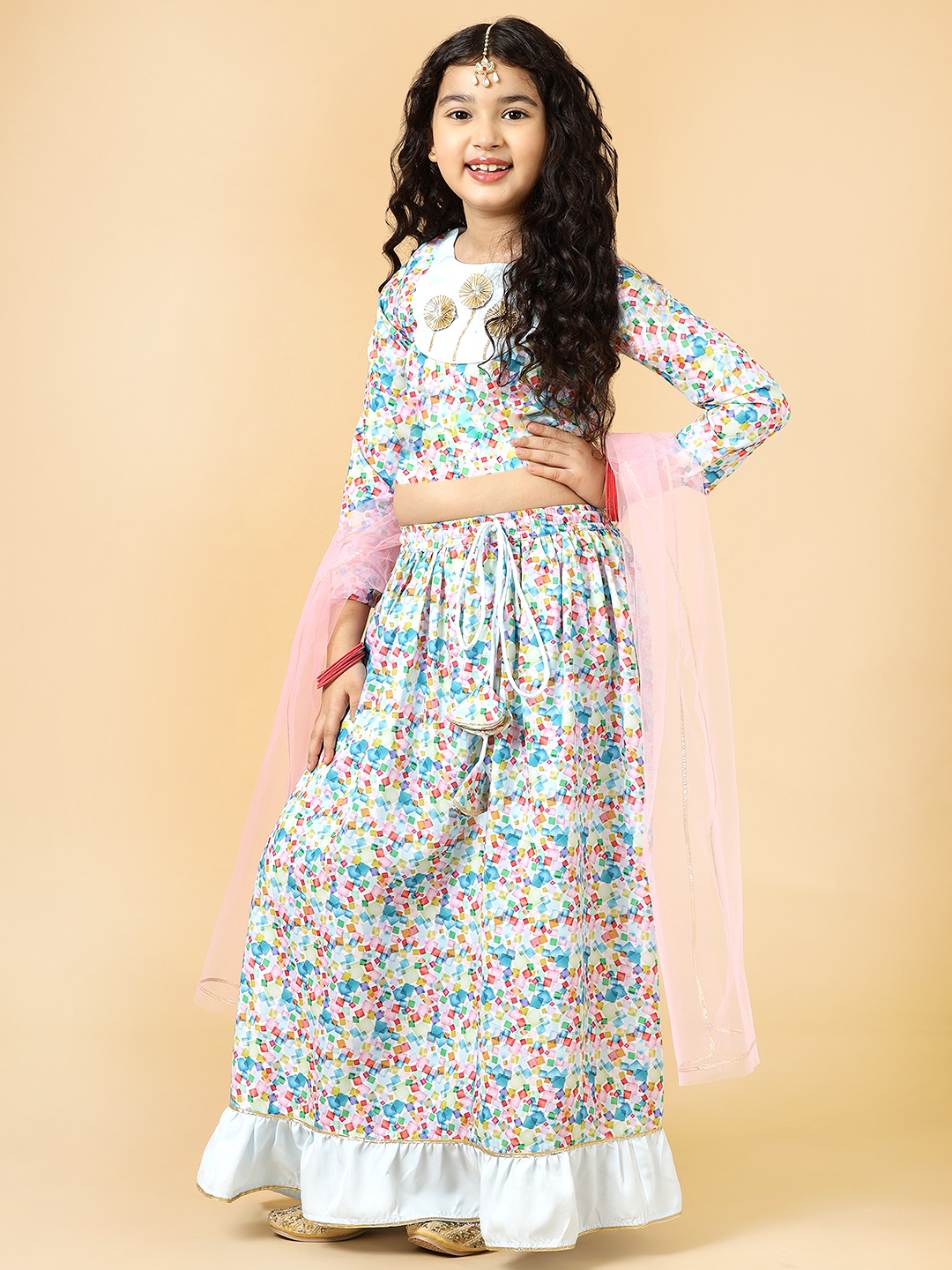 Festive season calls for a one-of-a-kind style for your little girl! This Flora Patch Lehenga Set designed by A.T.U.N. is the perfect Indian wear for her. Beautiful silhouette teamed with the perfect details add to its style quotient. Making it a must-have occasion wear for her.