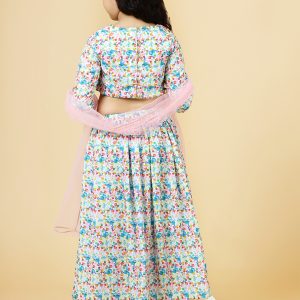 A.T.U.N. Girl’s Blue Floral Patch Lehenga Set