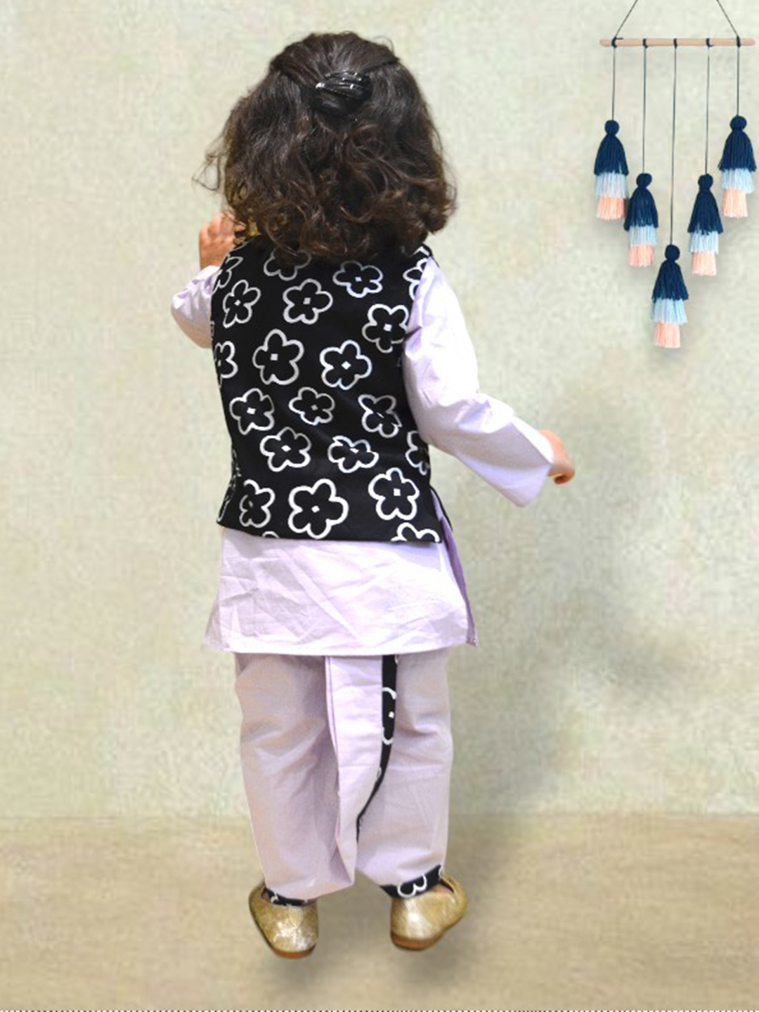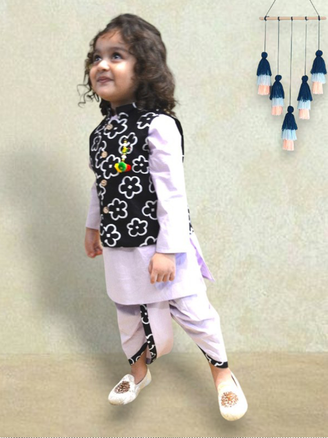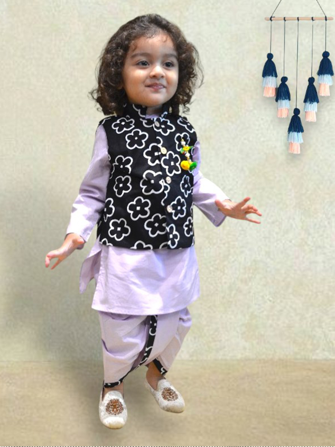 Boy’s Black Mauve Floral Cotton Kurta Dhoti with Jacket Set