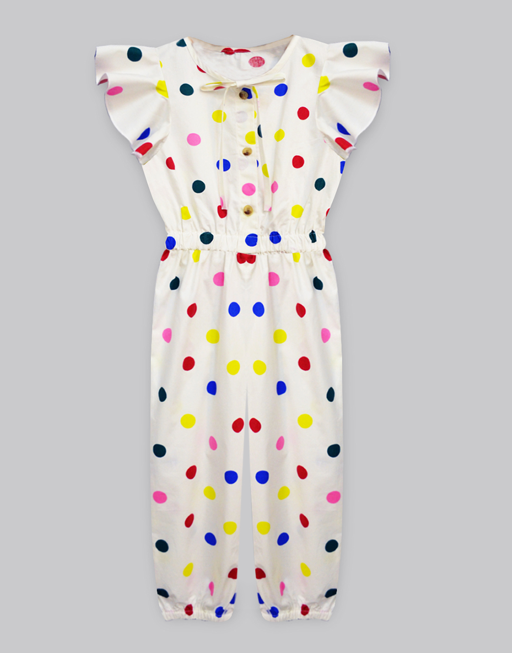 Season’s delight for your little girl! A lovely jumpsuit for that playday! Ruffle detailing along the sleeves and elastic along the waist and feet opening make it just the choice for all day wear.