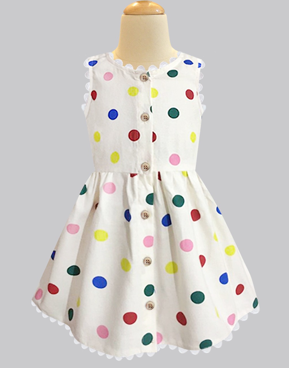 A chic style for the season. This comfortable cotton dress in a classic polka dots is so trendy, it will fetch compliments for sure! A flared skirt making it comfortable for your little girl to dance and prance her day through.