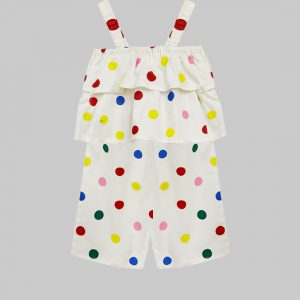Season’s delight for your little girl! A lovely romper for that playday! Ruffle detailing and elastic along the chest make it the right choice with a comfort fit for all day wear.