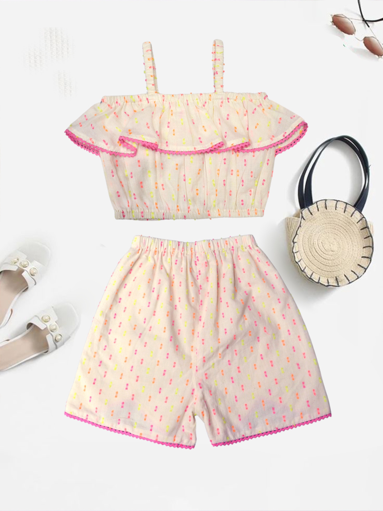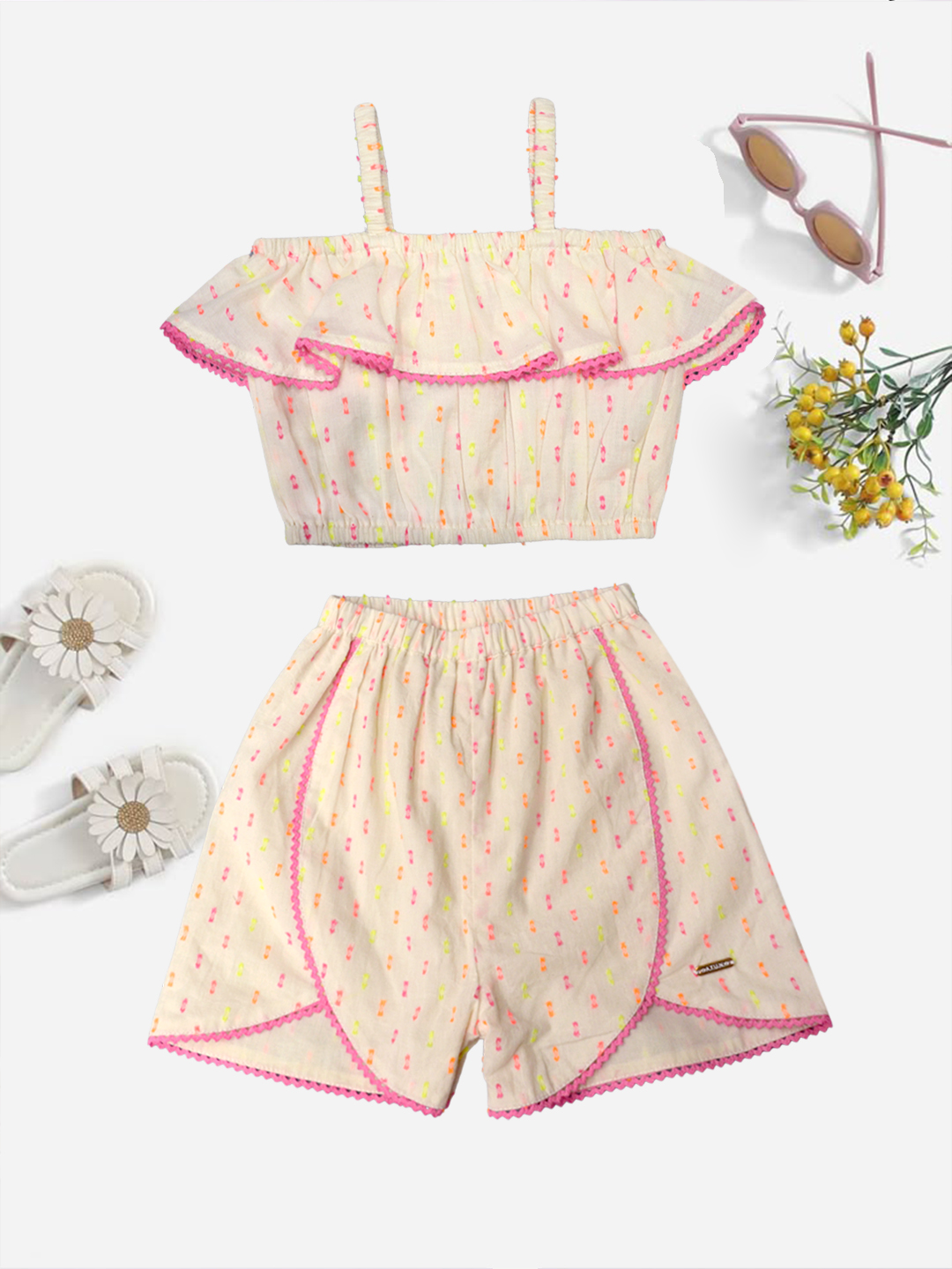 Give your little one a fresh and fashionable look with the A.T.U.N. (All Things Uber Nice) Girls Cotton Sleeveless Co-ord Set. Crafted from 100% pure cotton, this sleeveless co-ord set is designed for maximum comfort and breathability, making it a perfect choice for everyday wear.