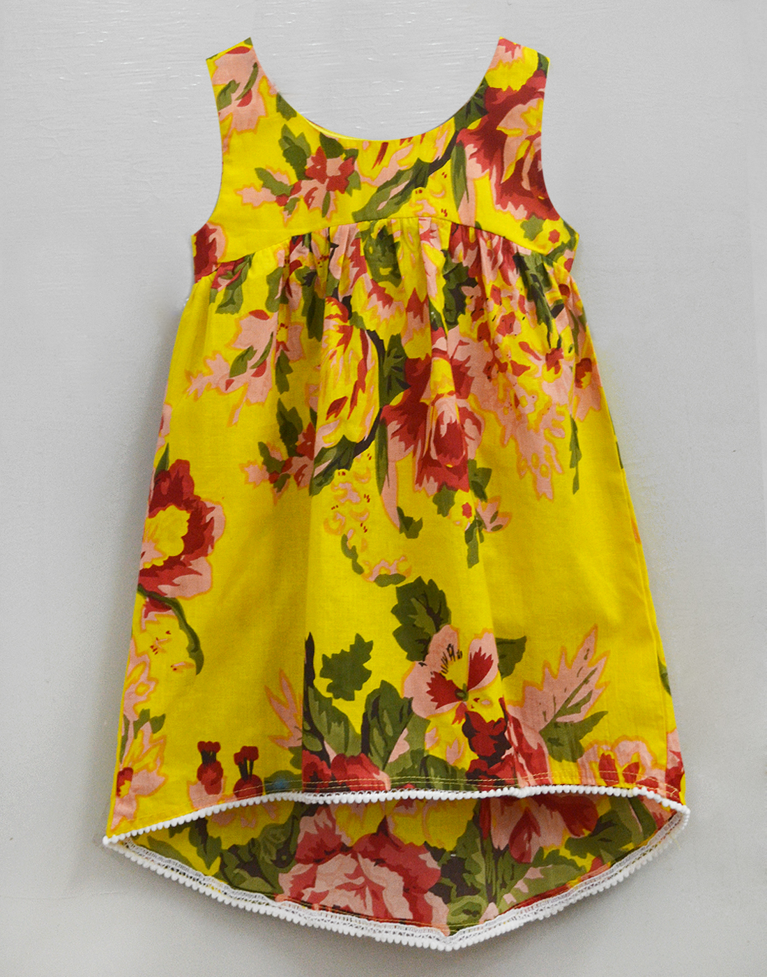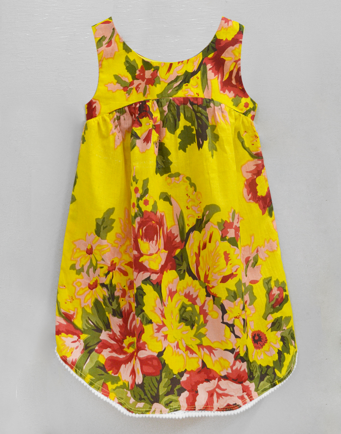 A.T.U.N. presents its most chic style for this season! A chic high low hem dress in the in a fuss free silhouette. White pom-poms along the hem to help define the high-low style and flare in the dress to ensure she comfortable may it be a party or play day.