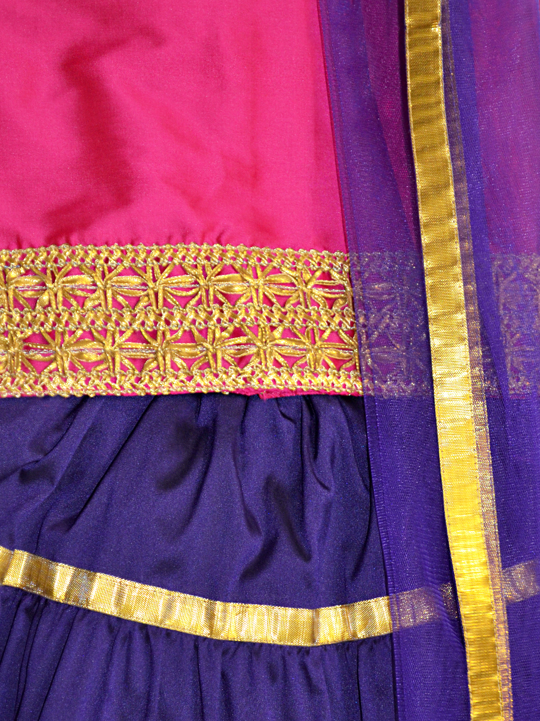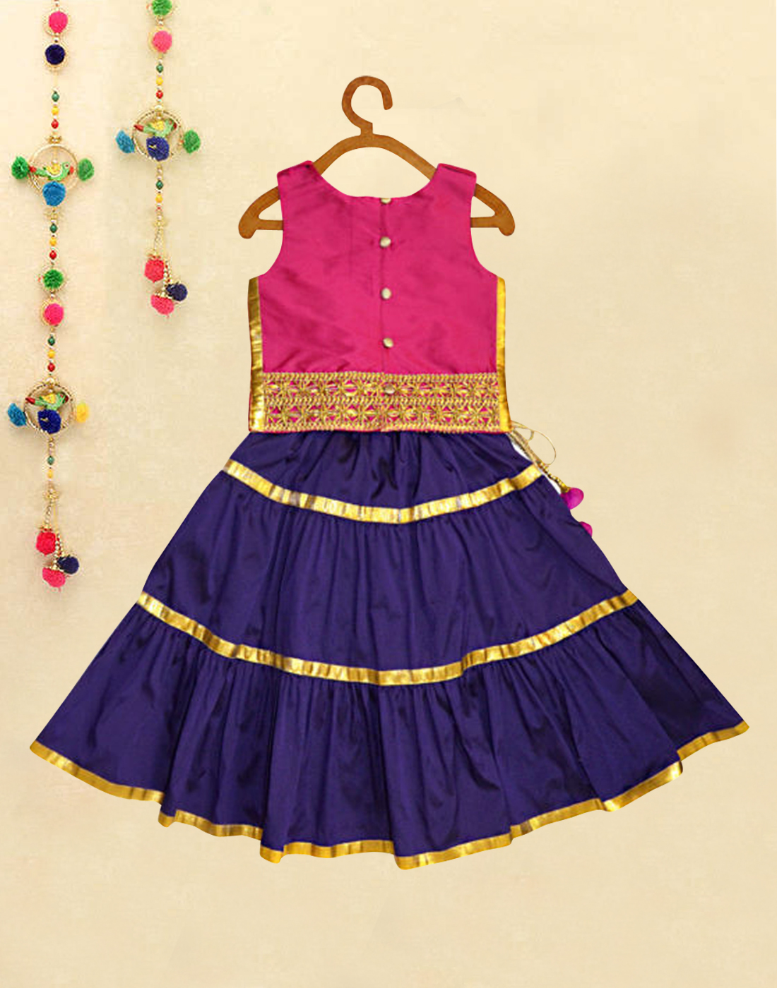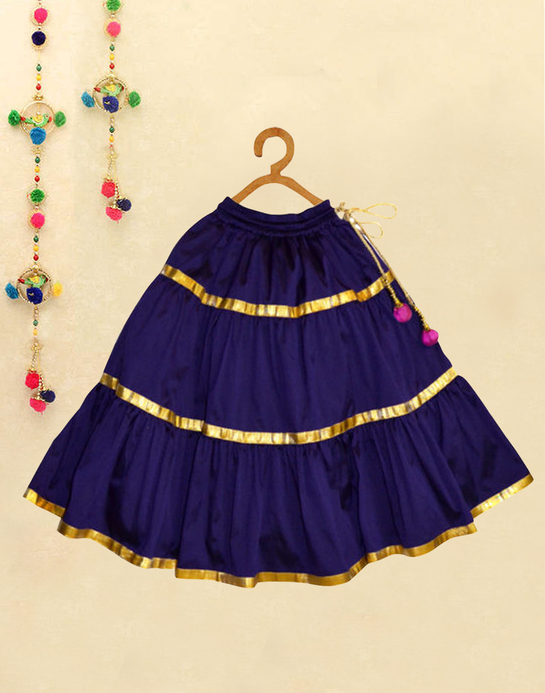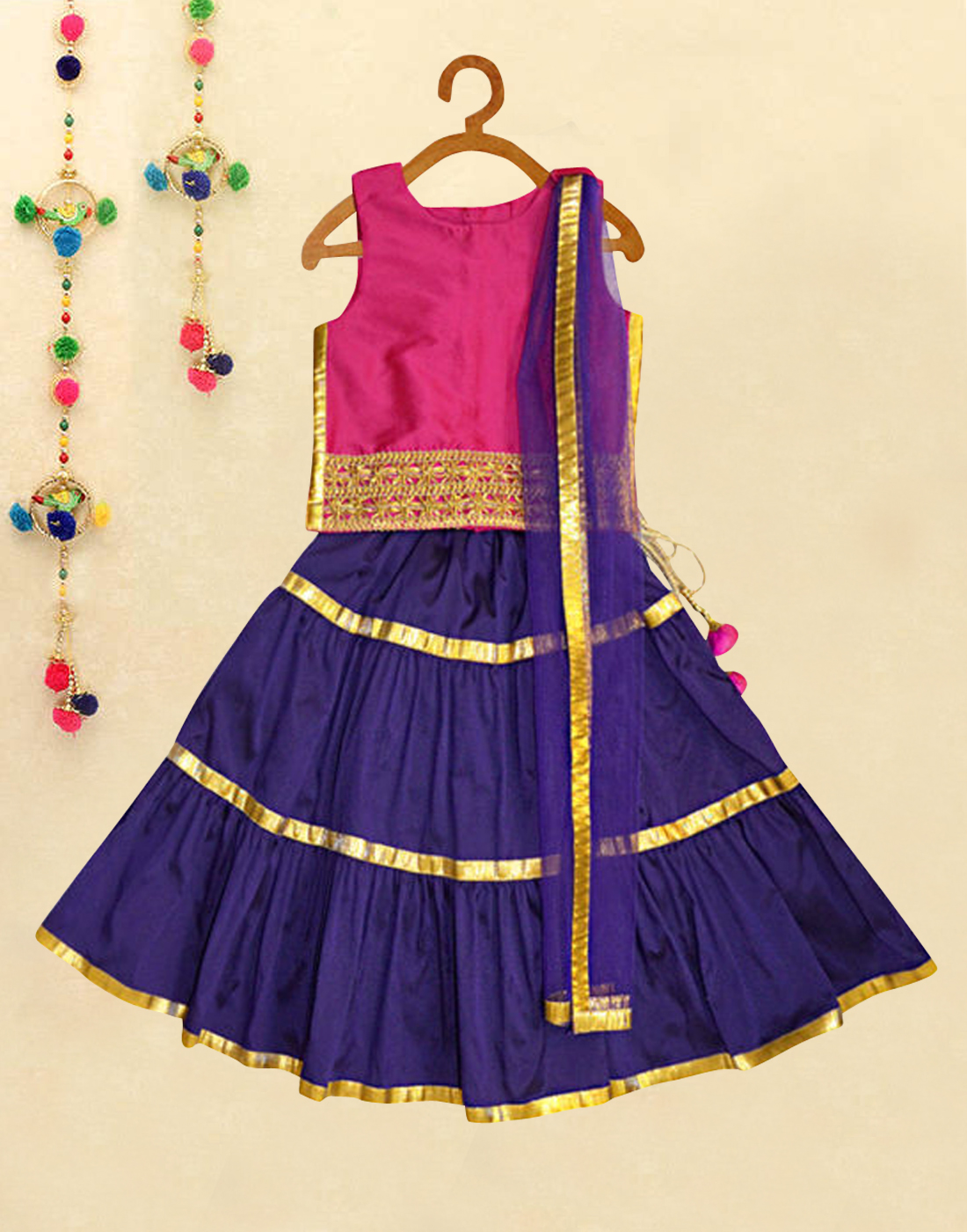 A never-like-before style for your little fashionistas coming along, perfect for festivals & weddings! This lehenga set by A.T.U.N. will be perfect for her. Contrasting colors blended in a combination so elegant, with gota lace beautifully used along the tiered lehenga and the bottom hem of the top. Not to miss out on the epaulettes on the top, so your little one can easily tuck her dupatta in them and an elasticated lehenga waist for a comfort fit. She will surely love this stylish yet comfortable lehenga set.
