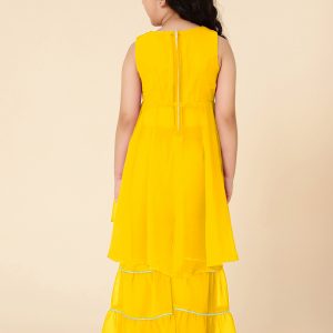 One of a kind style for your little girl ! This Sharara Set designed by A.T.U.N. is the perfect Indian wear for her. Beautiful embroidery that perfectly fit on to the look and adds to its style quotient that completes the look of your princess making it a must-have occasion wear for her.