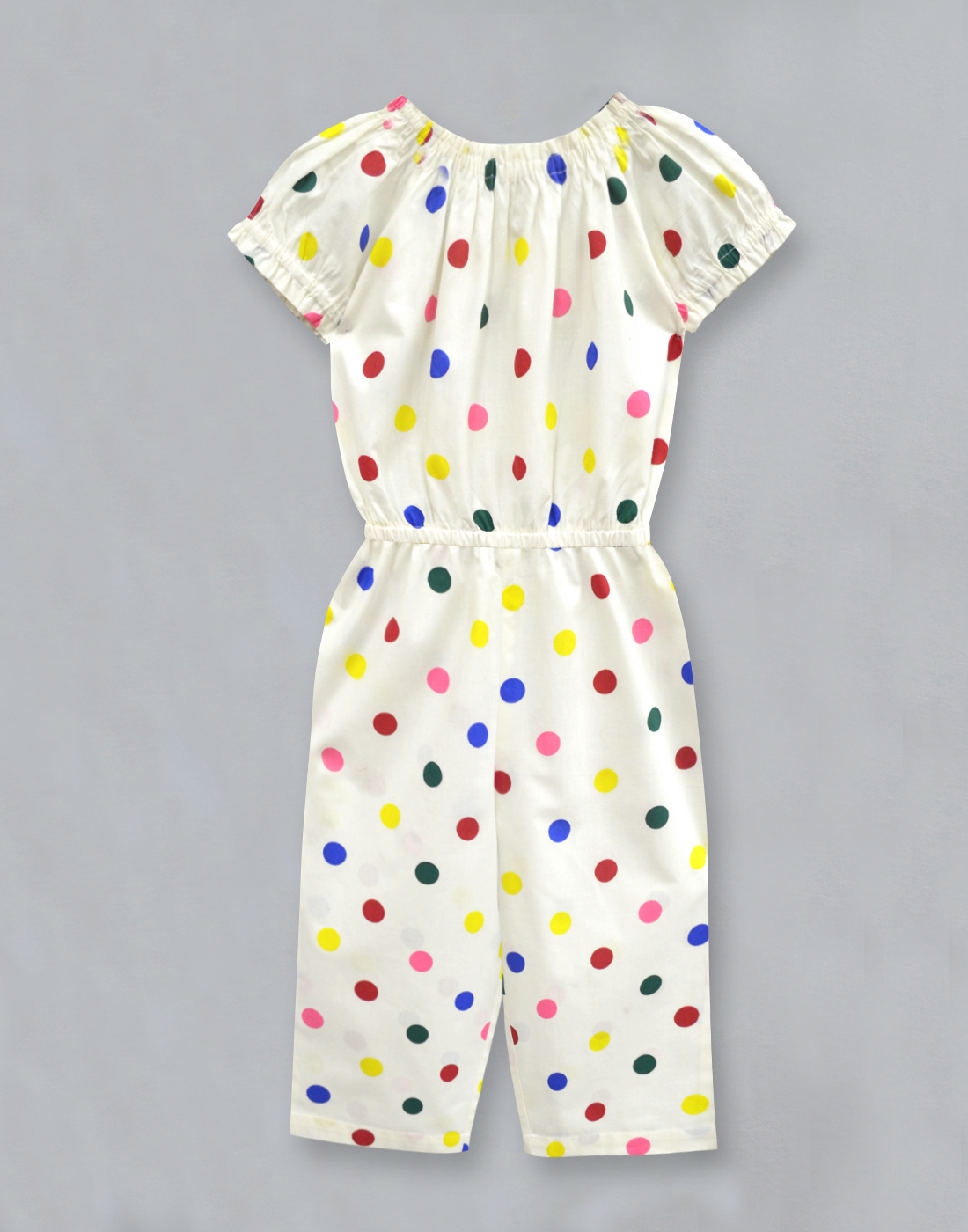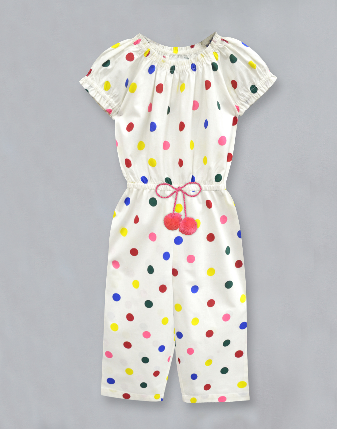 Season’s delight for your little girl! A lovely jumpsuit for that play day! Elastic along the waist with an adorable neon pompom addition make it the right choice with a comfort fit for all day wear.