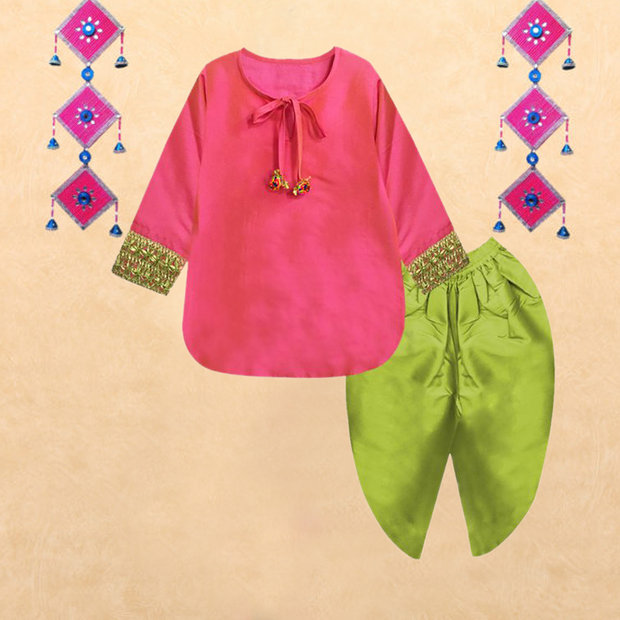 Presenting to your little one, the ever-so ethereal Shaziya Dhoti-Kurta Set. It’s comfortable, stylish and definitely the perfect Indianwear that your little munchkin would love to be in.