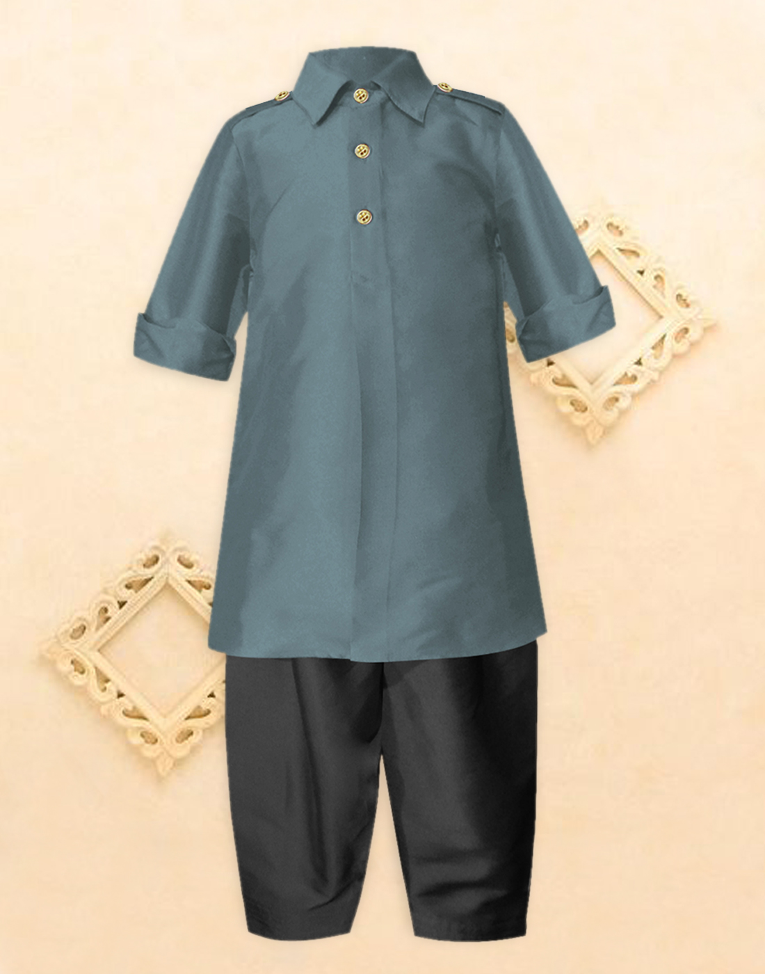 One of a kind style for your little master! This Pathani suit designed by A.T.U.N. is the perfect ethnicwear for him. Completing the look, a pyjama with an elasticated waistband making it a must-have occassionwear for your little boy.