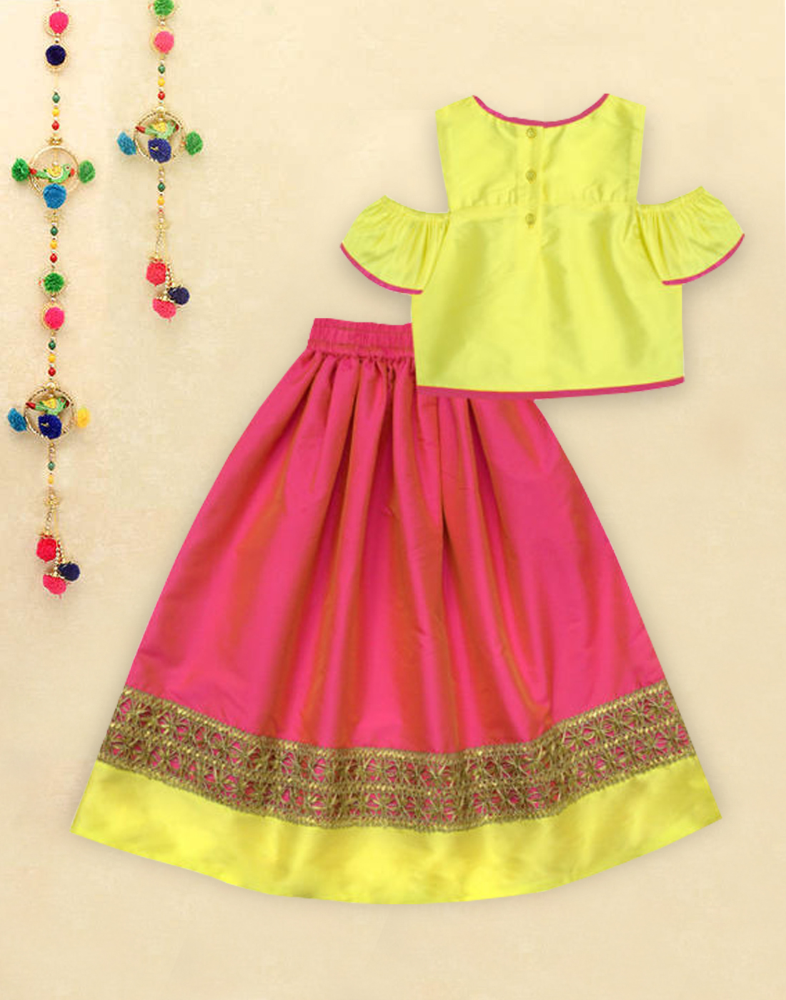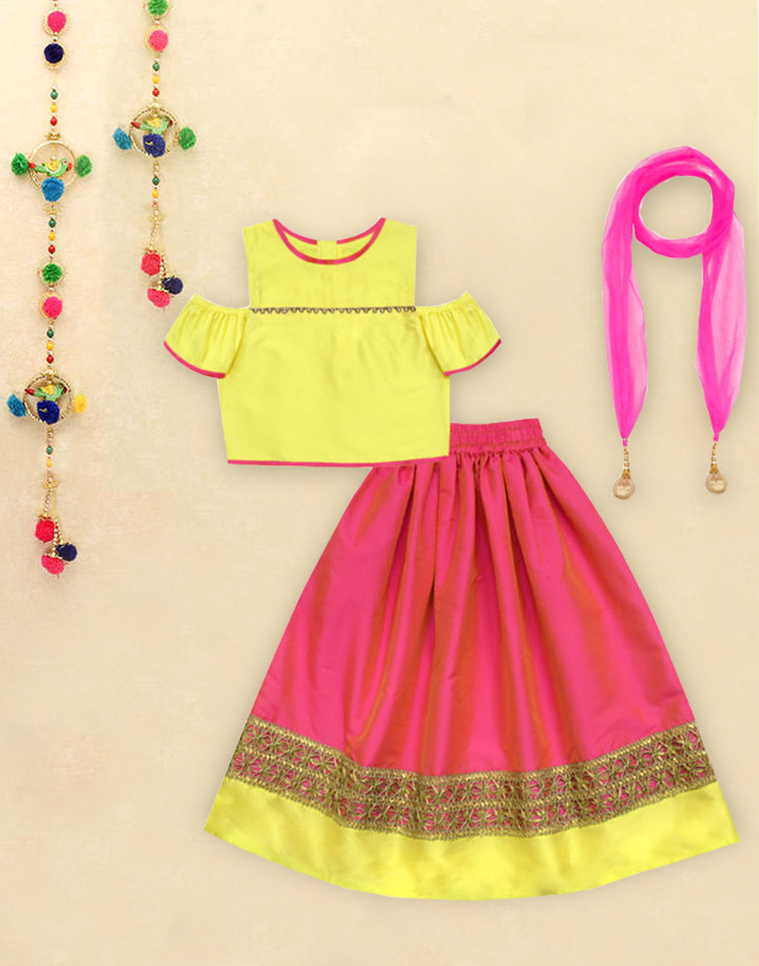 Have a wedding in the family? Or just one of those perfect occasion to adorn a lehenga so special your daughter will light up the event. A.T.U.N has just the style. A contrasting top & lehenga set with a matching dupatta with tassels that complete the look of the ensemble. Not to miss, our lehengas are light weight and very practical with an elasticated waist to ensure comfort fit.