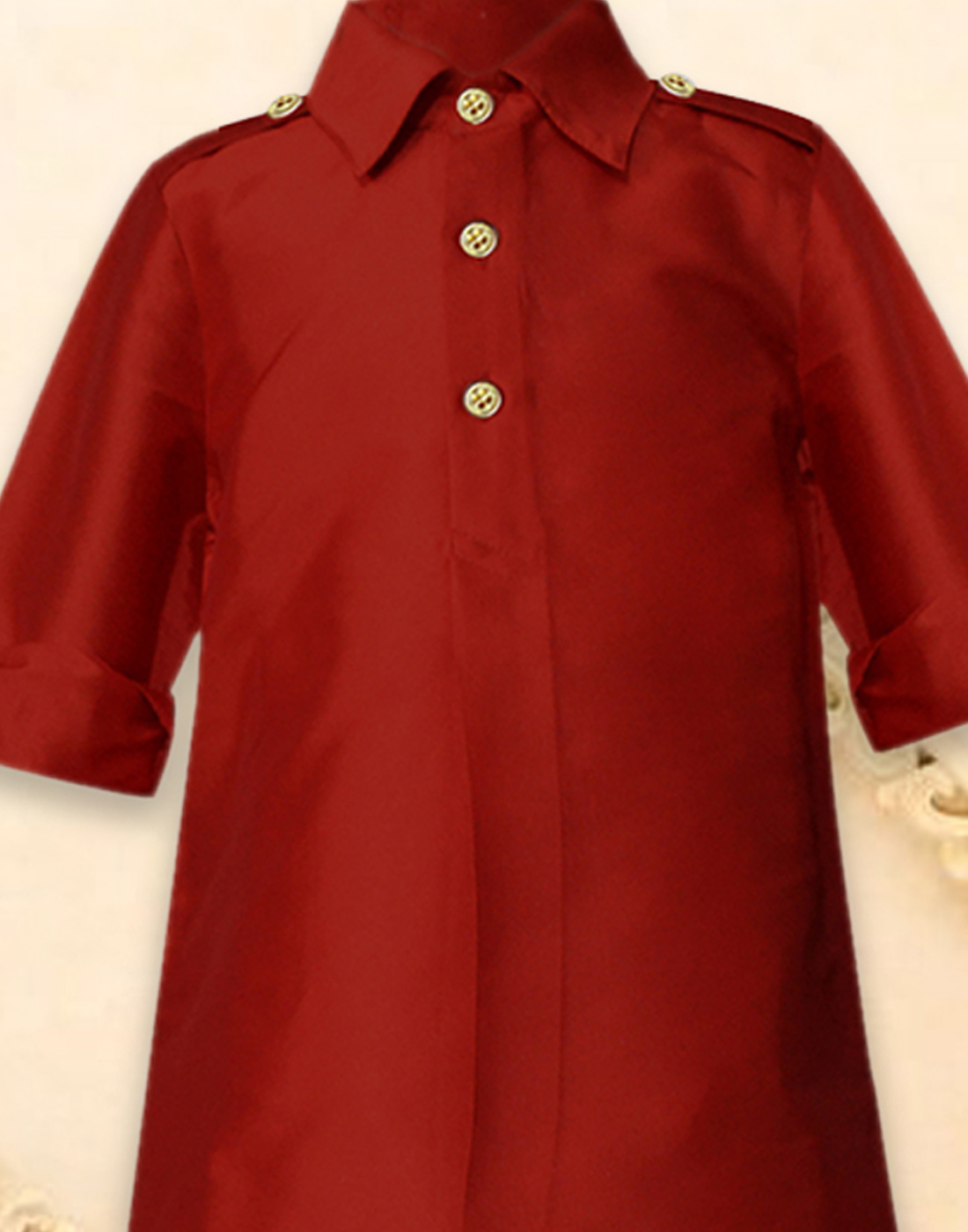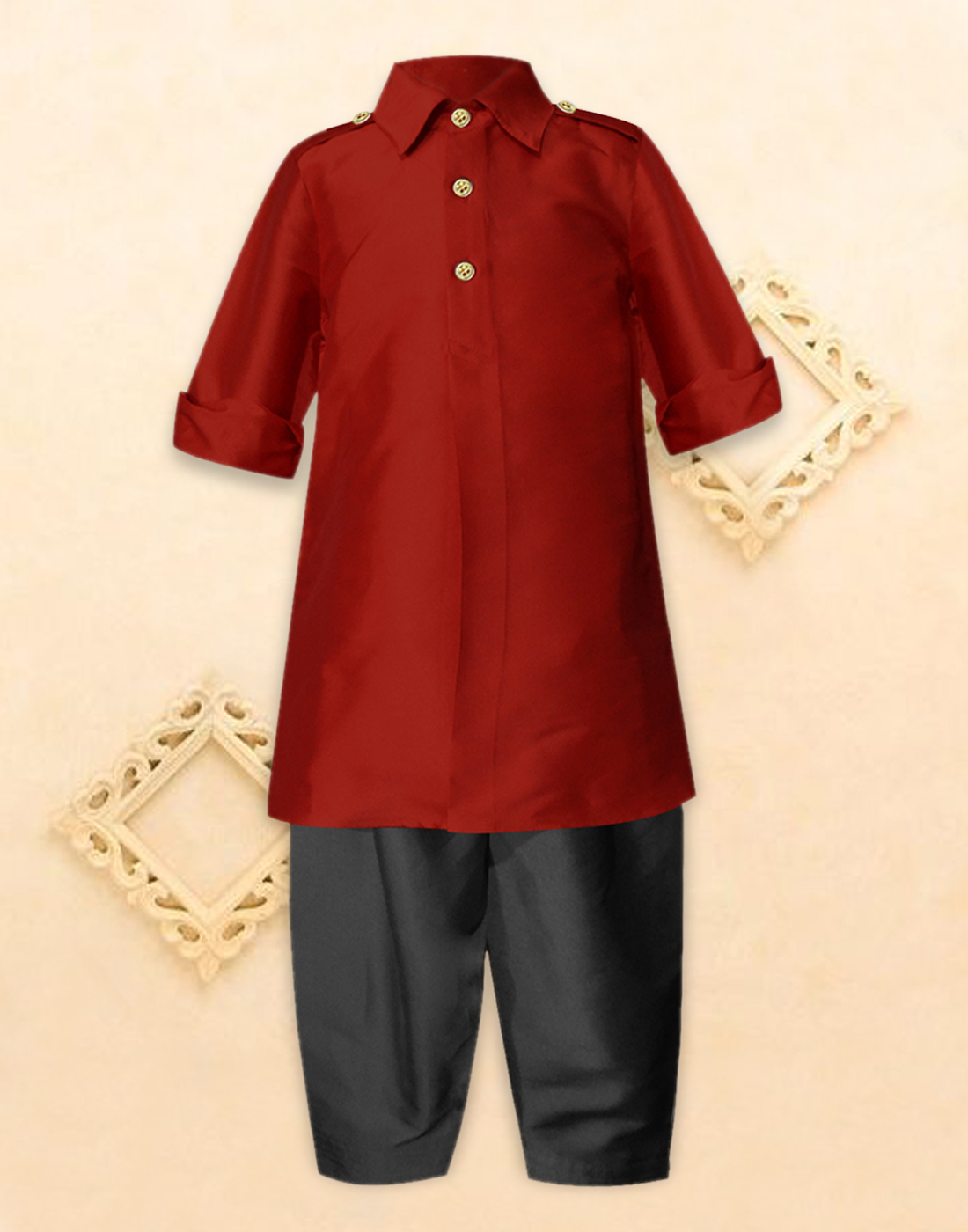 One of a kind style for your little master! This Pathani suit designed by A.T.U.N. is the perfect ethnicwear for him. Completing the look, a pyjama with an elasticated waistband making it a must-have occassionwear for your little boy.