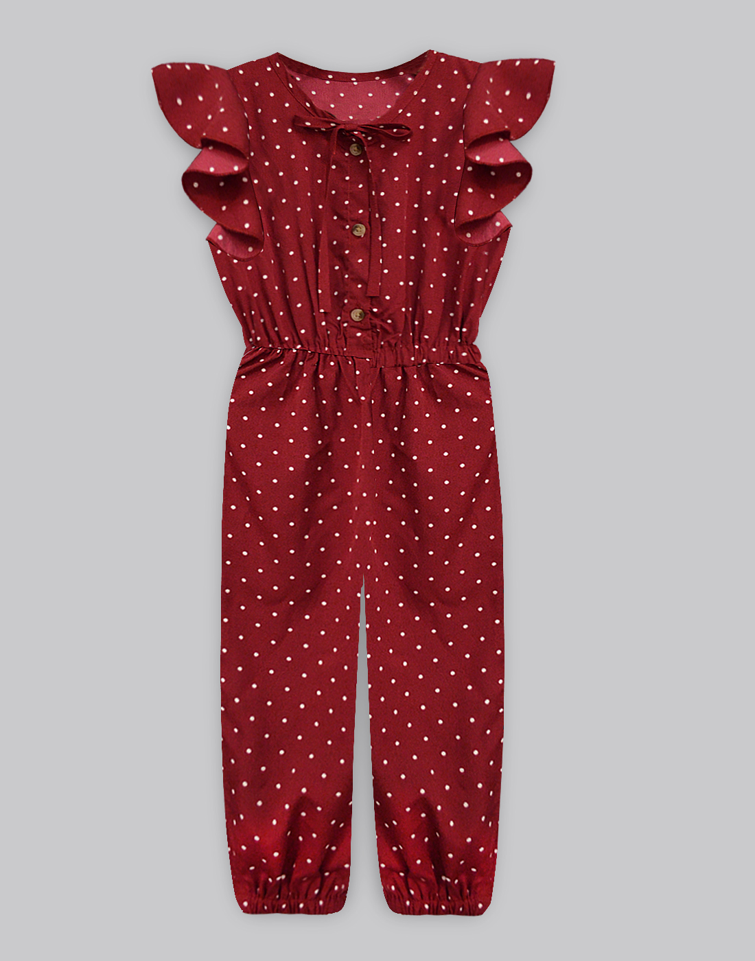 Season’s delight for your little girl! A lovely jumpsuit for that playday! Ruffle detailing along the sleeves and elastic along the waist and feet opening make it just the choice for all day wear.