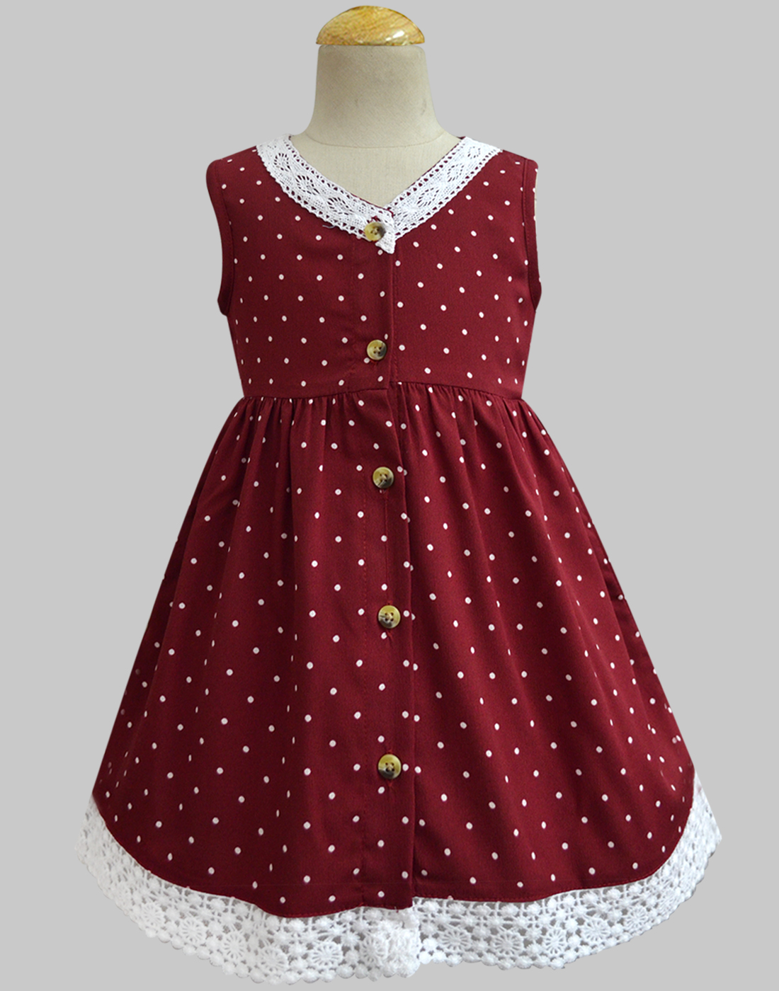 A chic style for the season. This comfortable cotton dress in a classic dots is so trendy, it will fetch compliments for sure! A flared skirt making it comfortable for your little girl to dance and prance her day through.