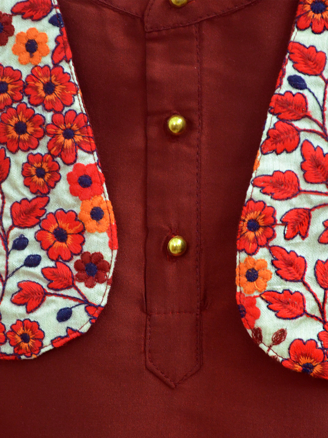 Mini Daisies Embroidered with Maroon Kurta & Dhoti Set
