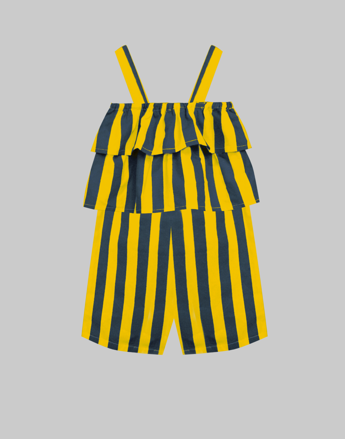 Mustard Navy Stripe Fionna Ruffle Romper