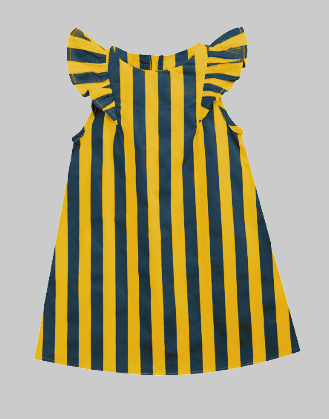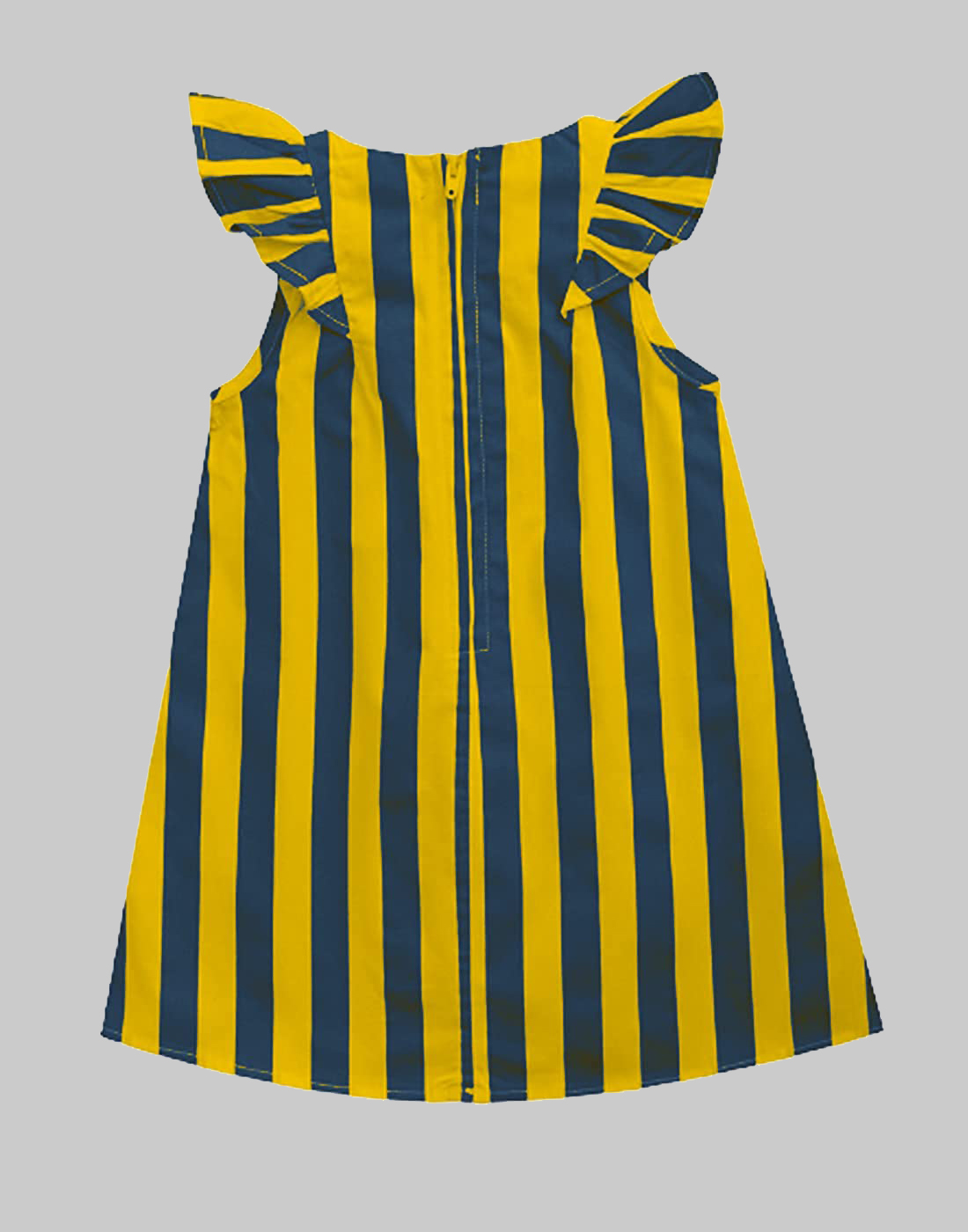 Classic shades in one adorable style and your little girl is all set for the day! Stripes on this silhouette along with gorgeous flutter makes this A-line dress a dainty choice for your princess’s day.