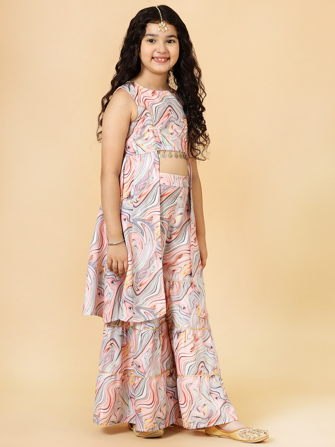 A.T.U.N. Girl’s Peach Sharara Set