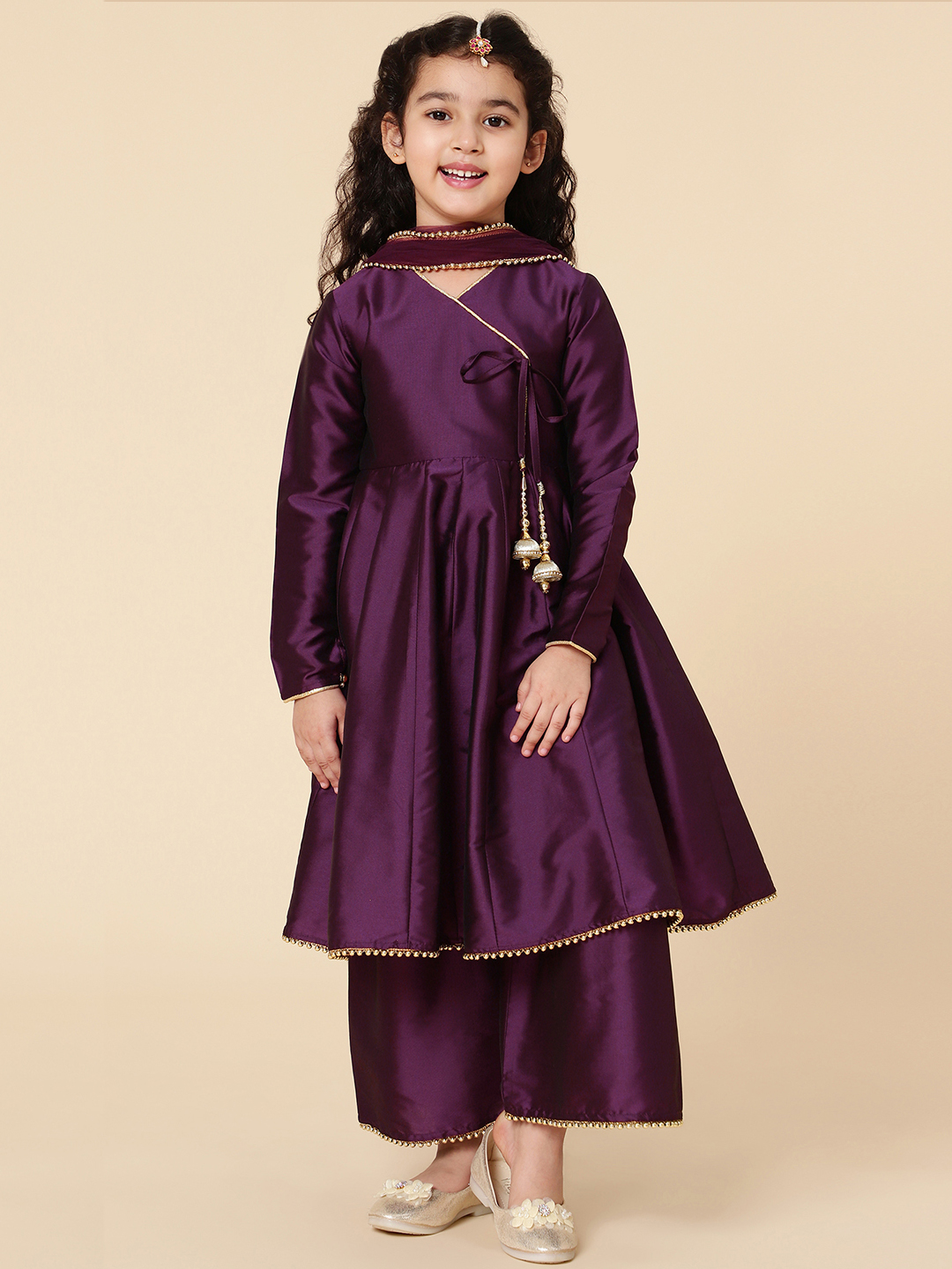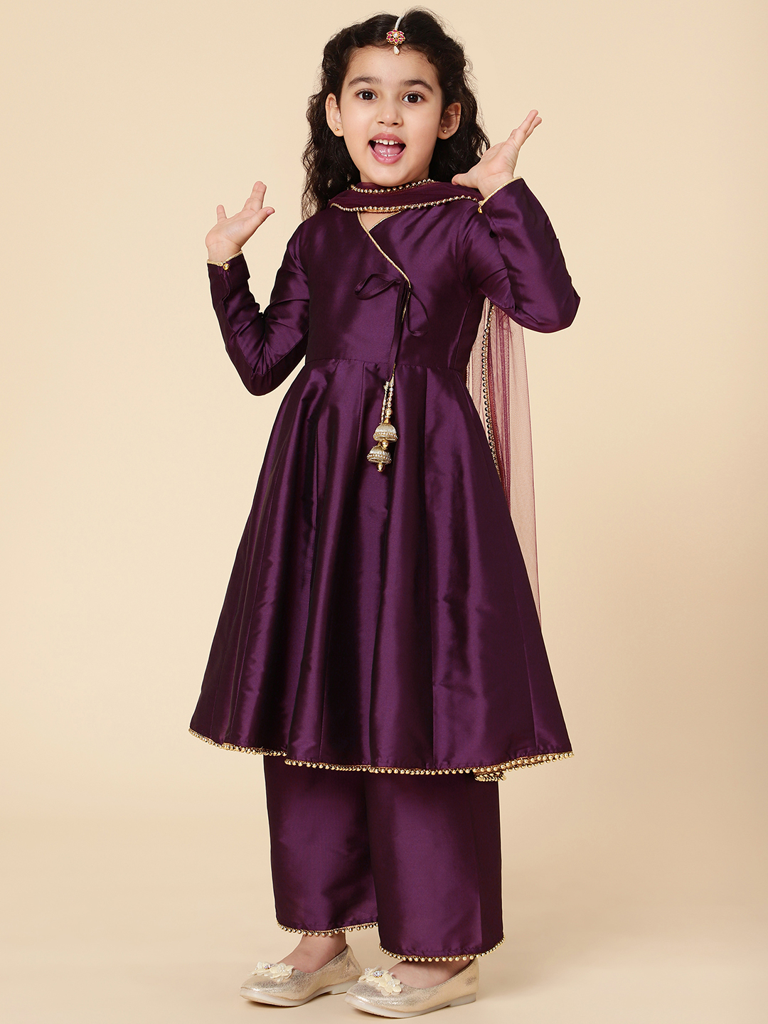 A must have festivewear just for your little princess! This Anarkali Set designed by A.T.U.N. is the perfect Indian wear for her. The tassels gives an ethereal ethnic touch and the comfy flared palazzos and dupatta which completes the look.
