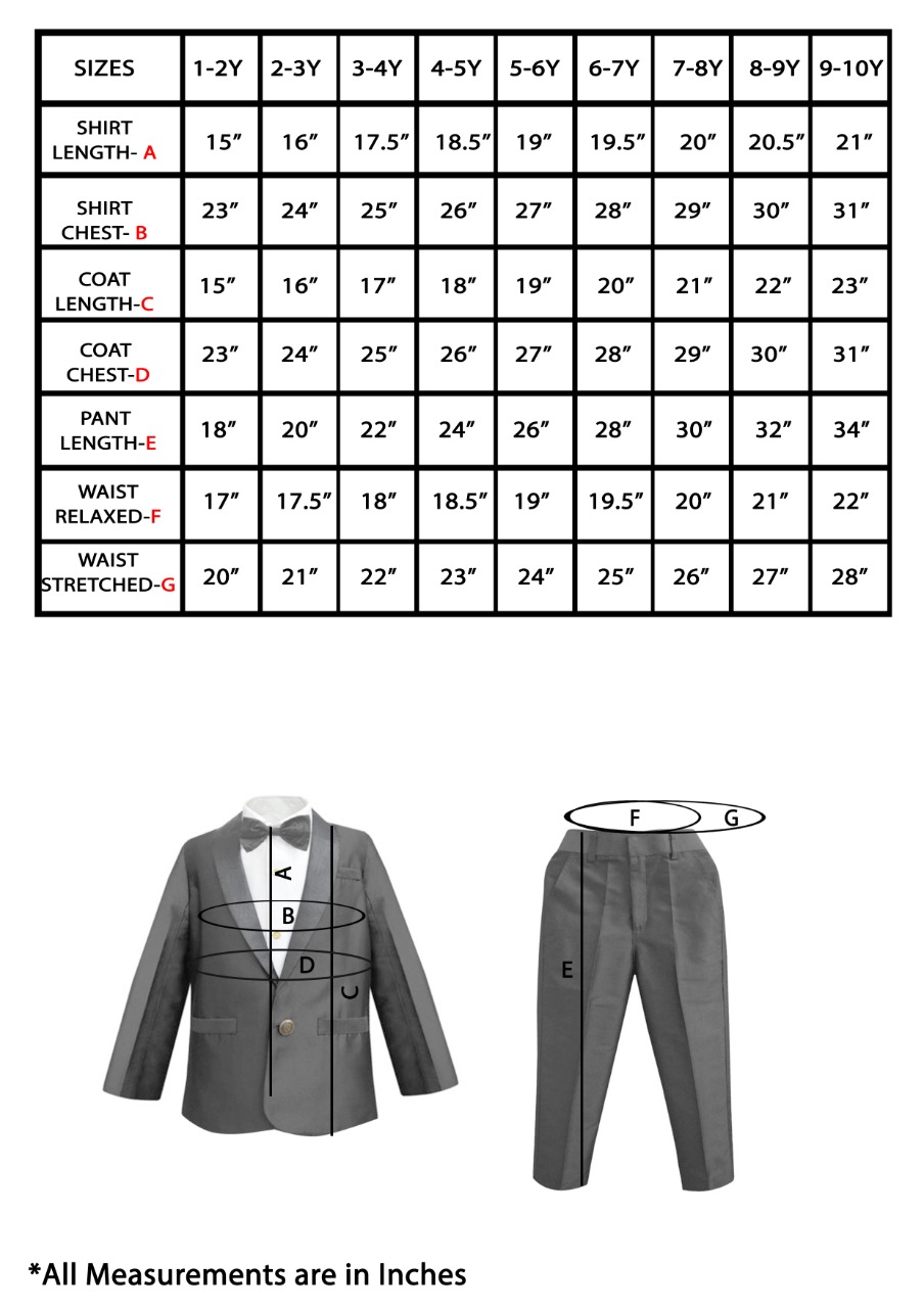 An extra formal affair? We have the complete ensemble ready for your little man. This three piece tuxedo, in colours so chic is sure to set a statement like no other.