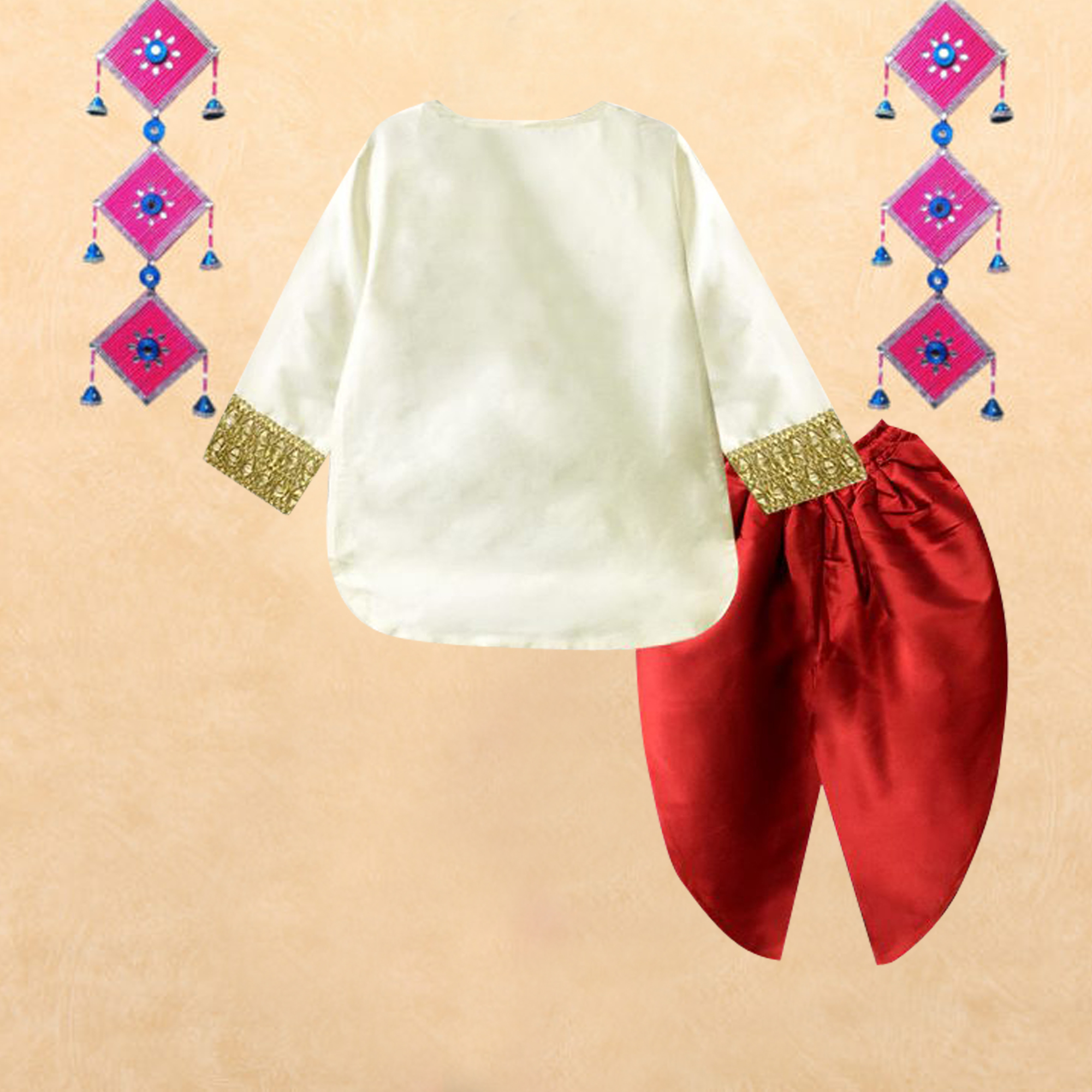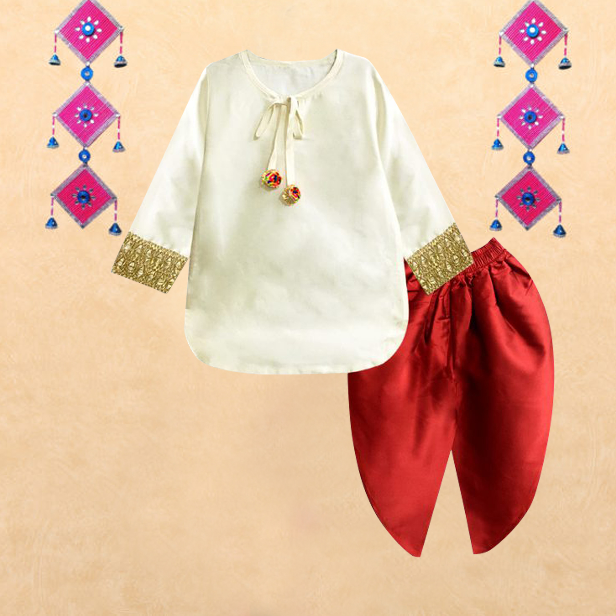 Presenting to your little one, the ever-so ethereal Shaziya Dhoti-Kurta Set. It’s comfortable, stylish and definitely the perfect Indianwear that your little munchkin would love to be in.