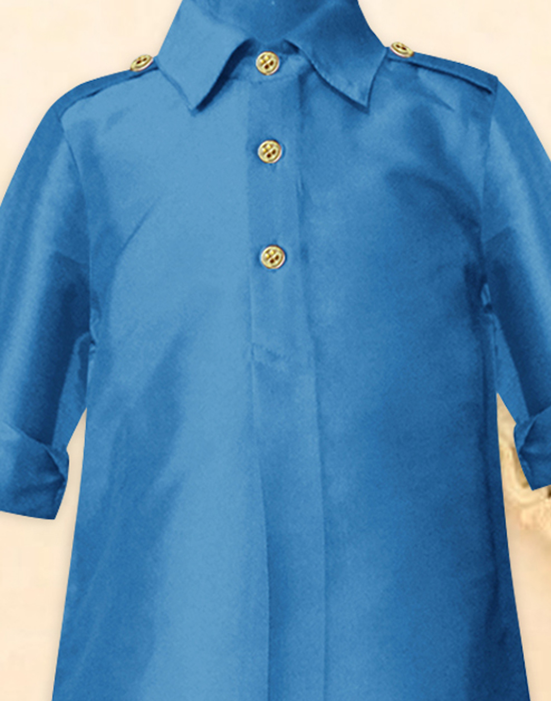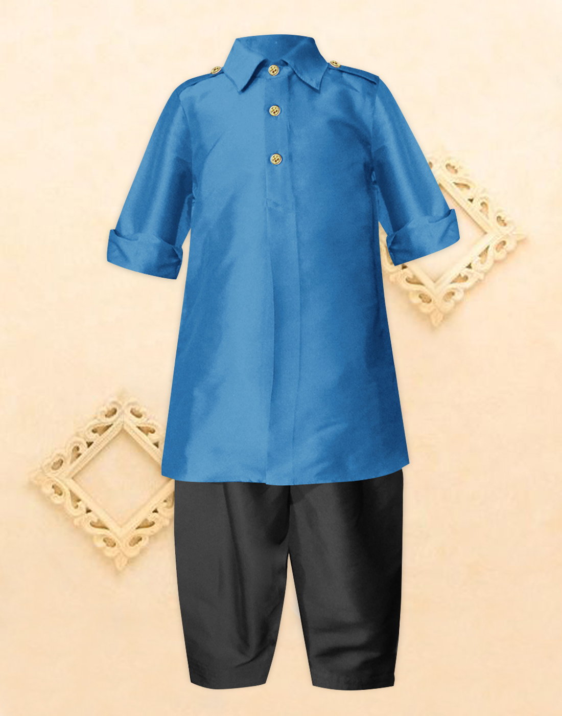 One of a kind style for your little master! This Pathani suit designed by A.T.U.N. is the perfect ethnicwear for him. Completing the look, a pyjama with an elasticated waistband making it a must-have occassionwear for your little boy.
